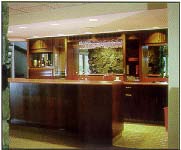 atmosphere. This fully-equipped wet bar includes all the amenities of a kitchen: two burner cooktop, mini refrigerator, and bar sink with 20-gallon icemaker, The masculine lines of the cherry cabinetry and mirrored