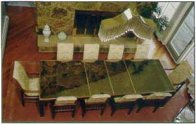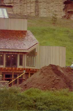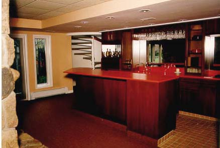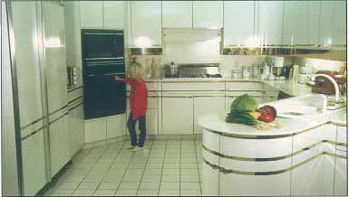 Generally speaking the basic house designs consists of essential rooms (bedrooms, kitchen, living room & bath) with limited possibilities of arrangement. Most architects will located rooms at certain places where they "are convenient", "work better" or "this is where they have to go". The owner (unless he has done his homework, knows very little about building their dream home) will make unsound decisions and occasionally interject the idea of, "I like it on this side" or, "I want it here" and once the house is built there is something about it that just doesn't flow or function right. The underlying problem is proper planning and design, with time being a factor. The Lawson house did not originate from a basic set of plans. But from certain ideas, desires and requirements a set of plans were created. To have accomplished certain ideas and requirements the floor space would have to be designed of various and different dimension; an odd angle may have to be had or an extra room added. The final design could be had within three floors—any more than three floors would have been impossible to have congealed the rooms into a functional home.—The same would be true if the entire house was only one floor, the rooms would have been too far apart and continuity of the home would have been lost. So, there has to be a correct coherence. Consider: the main floor of the Lawson house was designed to its maximum width and length to retain continuity. To accomplish the overall requirements other floors had to be designed and constructed in a way so as to cause the house to look and function with the togetherness and closeness of a single unit, bringing the desired rooms and areas together on multiple levels into its designed purpose-a functional home of unsurpassed livable and enjoyable The creation of the Lawson design took place over a ten year period. It included the work and ideas of several architects, with numerous designs, redesign, building of scale models, with input from decorators, engineers, contractors and various specialty people. From the challenge presented to the architects a most unique and functional house emerged. It is a house with diverse and distinctive areas, but functions as a single unit. A place that caters to individual privacy of the housemaster, guests , children or adults. A place where adults could maintain an area of privacy; to sit, relax, work, entertain, & etc., without the direct intrusion of children, going and coming. A place as well where children could play and study, a separate place of their own domain, mainly the second floor bedroom/lounge/living room area, and a place for indoor recreation (first floor). Finally a grand place where all roads lead, where family, friends and guests can all come together-- the great-room/kitchen/dining area. This area flows as an extension to the outside entertainment area. The interior structural design is such that it lends itself to a diversity of decor -with only change of paint and furniture. The Lawsons had mixed opinions as to the type of decor. Mr. Lawson preferred the more natural tones while Mrs. Lawson preferred the very popular pastels (present decor). With the openness of the main entrance living room area --accented by the natural rock chimney and floor to ceiling glass this area could become the most comfortable room in the house—a true homeowner's retreat.. The large windows allow the natural beauty of the landscape and mountains to enhance the rustic fireplace with its natural burning wood logs, large lounging leather sofas and area rugs-some of Mr. Lawson's thoughts. (He has permission to change the decor after a number of years—the present decor is somewhat different in the study/music room.) The Lawson house radiates openness and airiness while maintaining privacy-children playing in the great room, parent catching a nap, student studying in the library or lost in the serenity of the mountains seen though the twenty foot paneled wall of glass. Not too large as to loose its continuity as a home, yet not chopped up to resemble a motel; making this a most unique home for family, guests, or entertaining. To go beyond this house in scope and size is to overindulge in excessiveness with the possibility of losing continuity-for the most part not functional and really add no additional comfort or convenience. None are better built than the Lawson estate. It will last for generations, growing more gracious with age. The size may not compare with some of the country's most outlandish estates, but in design, material and craftsmanship it will rival any, exceeding most. The Lawson house is elegant, tasteful, appropriate, yet simple and fitting. Where most large homes could cost a fortune to heat, cool, care for and maintain, the Lawson house can be lived in with no more expense than the average home-due to forethought, planning, workmanship and material. Great Room It is the central gathering place for the house and outside activities. Located on the main floor, it is unquestionably the most used room in the house. Large and open, it is accessible from four directions. Architecturally and effectively designed to be convenient to all areas of the house, as well as the outside activity complex, it is attached openly to the kitchen, dining areas and kitchen bar; this is an exceptionally versatile area. Built to function as a highly trafficked and lived in area, its only freestanding furniture requirements is for sitting. One entire wall is a custom built storage and accessory unit. Masterfully built of solid wood and Malaysian Teak, it is described by the cabinet company president who built it as being the finest piece of cabinetry he had ever built. With its many doors, drawers and shelving, built-in wiring, etc., it is designed to accommodate the room's needs from TV, stereo, books, storage, & etc. Massing over 1,000 feet of floor space, the great room is a room for large gatherings, children playing, watching TV