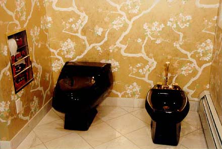 The master bed and bath is virtually soundproof unless opened to the private garden and its numerous songbirds. It is truly fitting for the master of this grand estate. Guest Bathroom/Mud Room Located on the main or 2nd floor, it is a full size bath of exquisite decor accommodates guests with a full length mirror, cushioned accessory seat and a pedestal basin. In keeping with the detailed construction of the house, it has a solid lead-pan floor with drain, acrylic shower stall, built-in furniture, vent, multi lighting source with dimmers, individual auxiliary built in heater, Kolar water closet, and built in magazine rack. It also serves as a mud room, with a direct entrance from the garage as a place to change prior to entering the house itself via the main floor corridor. Bedrooms Third floor family and guests: Rooms of serenity and quietness with large windows and glass doors that open onto private outside balconies. As with the other windows throughout the house, the mini blinds located between the panes of glass, when closed virtually eliminate any outside light. All family and guest bedrooms open to, or entered, via a living room/lounge area. A private area for guests and