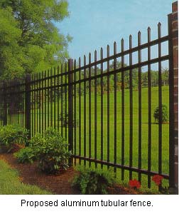 To say; mechanically remote controlled entrance gate system built to conform with a 6 foot high decorative security fence to encompass front of estate attaching to a 6 foot high chain link security fence on each side portion of estate finally tying into thirty foot high cliff that cuts across back of estate for the making of a totally secured enclosure.. The "outside" portion of the Lawson estate is a fantastic creation of real-estate.