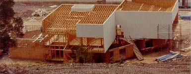 Windows and Doors The various array of windows, glass doors and skylights is an architectural design achievement in their ability to dazzle or subdue a room with natural light, bringing openness and airiness throughout the house. All windows, skylights and doors are made by Pella with double pane tempered glass. Pella and Lawson estate architects worked together to custom design and enhance portions of the windows and doors, adding to the openness, serviceability and security of the Lawson house. Where appropriate the windows have bronze solar panes which help to soften the intense rays of the sun and to add privacy (work as a two-way mirror). The inside panes are removable. Between the two panes is a removable mini-blind with controls located outside the frame. The windows roll out for convenience and ease of cleaning. A roll-up hideaway screen is built into the top of the window. All sliding doors have a retractable screen door. Both doors and windows are designed with the most versatile and effective security latching method available. Decorative and durable, they are the Cadillac of windows. Chimney The chimney, being constructed faster than the house framing itself, arose as a massive structure approximately 40' in height and weighing in excess of 100 tons. It was constructed by one of the best chimney builders and stone masons in the country. Built of native rock with two separate flues, built in fresh air ducts and two (1st and 2nd floors) huge 48" openings to both side fireplaces, makes it ideal for burning wood. Ashes fall through a chute and are removed from a special bin on the first floor. Fireplaces are equipped with air tight damper. The natural gas service, with controls conveniently located in the chimney hearth, can be used for gas logs or as a starter for wood logs, & etc. Built independently of the house and self supporting it is designed as an integral part of the overall flow and function of the interior; it functions superbly. Interior Design If the interior design of the Lawson house was not unique it would be out of harmony with the overall meticulous design of the Lawson Estate. It is a stunning array of open spaces, lofty ceilings, walls of natural rock and glass, spacious rooms and grand stairways, knitted together in a working order that allows for individual privacy while maintaining the cohesiveness of a family dwelling.